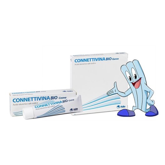 Connettivina Bio Garze è una preparazione topica a base di acido ialuronico, utilizzata per il trattamento di irritazioni e lesioni cutanee. L'acido ialuronico, nella concentrazione dello 0,2%, possiede proprietà idrofiliche che forniscono un ambiente idratato intorno e tra le cellule, facilitando la migrazione cellulare e favorendo la guarigione con buoni risultati estetici.