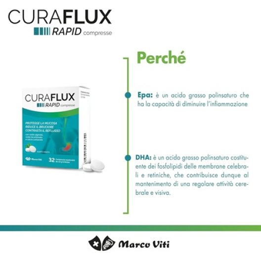 Dì addio al fastidio del bruciore e del reflusso con Curaflux Rapid, il dispositivo medico in compresse masticabili formulato per offrire un sollievo immediato e una protezione duratura della mucosa esofagea. Grazie alla sua triplice azione – protegge la mucosa, riduce il bruciore, contrasta il reflusso – Curaflux Rapid è l'alleato ideale contro i sintomi correlati all'iperacidità. Il suo meccanismo d'azione meccanico, basato su alginato, bicarbonato e carbonato, crea una vera e propria barriera protettiva nello stomaco che blocca la risalita acida, permettendoti di tornare subito al tuo benessere.