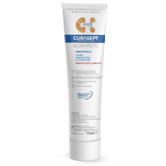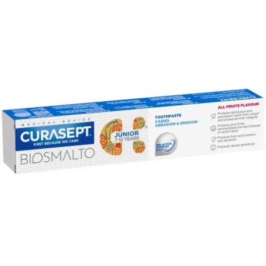 Curasept Biosmalto dentifricio junior 7-12 anni - protezione carie, abrasione, erosione - gusto tutti frutti - 75 ml