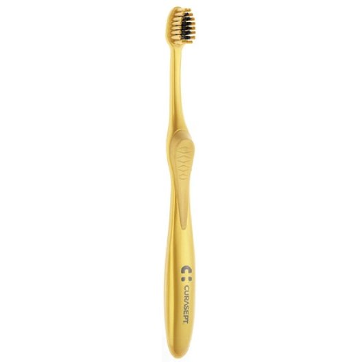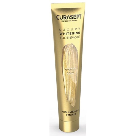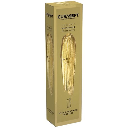 Curasept Luxury Gold Lux - Dentifricio sbiancante con microperle di oro e argento + spazzolino sbiancante al carbone attivo - 75 ml