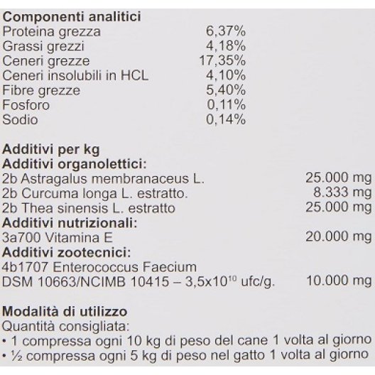 Tenere fuori dalla portata dei bambini. Non superare la dose giornaliera consigliata. Per cani e gatti in stato gravido o in allattamento si raccomanda di sentire il parere del medico veterinario.