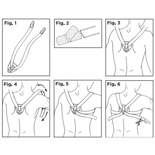 Posizionamento Scudo (Fig. 3): Collocare lo scudo imbottito tra le scapole, assicurandosi che il logo Dr. GIBAUD® sia rivolto verso il basso.