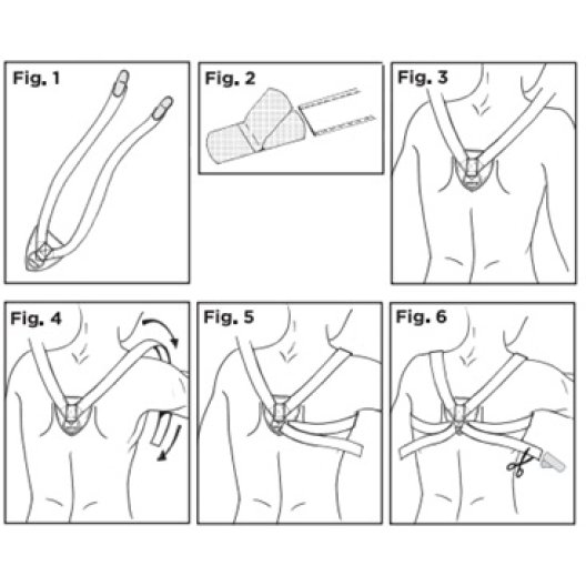 Design a "8": Doppia cinghia che simula il classico bendaggio funzionale a otto per la clavicola.