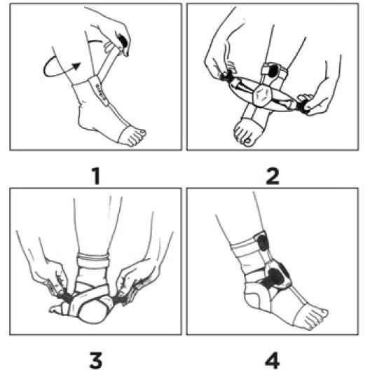- Preparazione: Calzare la cavigliera e fissare la chiusura anteriore e il cinturino superiore.