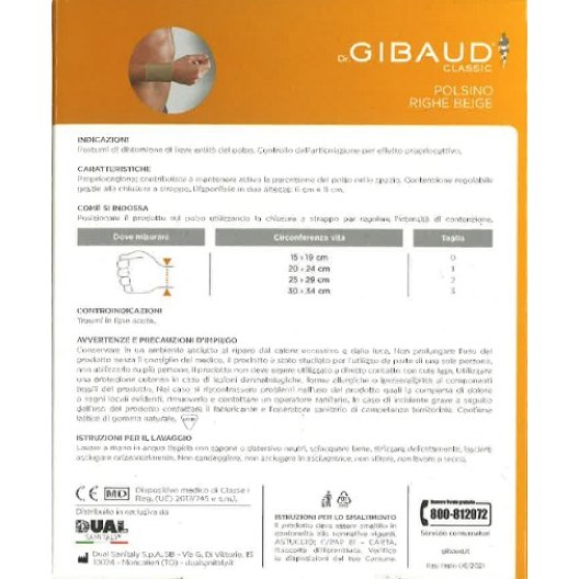 Il Gibaud Ortho Polsino a Righe Beige da 6 cm è progettato per fornire un sostegno efficace al polso in caso di distorsioni lievi, favorendo la propriocezione e migliorando la stabilità articolare.