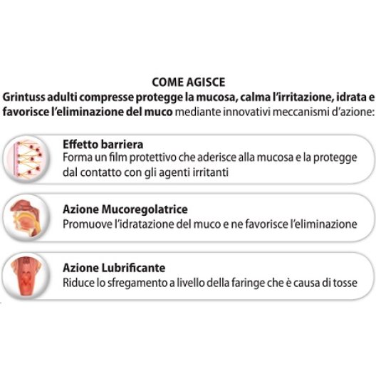 Azione Protettiva: Grintuss forma un film protettivo che aderisce alla mucosa, creando una barriera contro gli agenti irritanti, calmando l'irritazione.