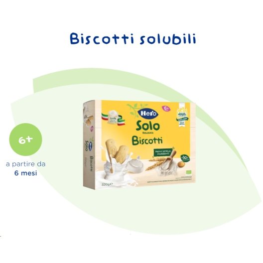 I Biscotti Solubili Hero Solo sono una scelta intelligente e deliziosa per l'alimentazione del tuo bambino. Prodotti in Italia con farina 100% italiana e ingredienti biologici, questi biscotti sono pensati per offrire una soluzione pratica e nutriente per i piccoli a partire dai 6 mesi. Con il 30% di zuccheri in meno rispetto alla media dei biscotti per l'infanzia più venduti, rappresentano una scelta consapevole per promuovere una dieta equilibrata fin dalla prima infanzia. Inoltre, con ogni confezione, riceverai 150 punti Coccole Pampers, grazie al codice presente all'interno della confezione.