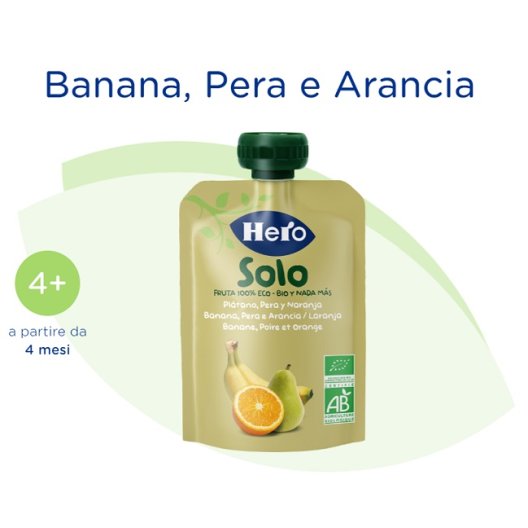 Hero Solo - Frutta Frullata Banana, Pera e Arancia: gusto naturale e nutrimento per il tuo bambino