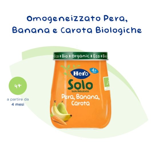 Omogeneizzato Pera, Banana e Carota Biologiche Hero Baby Solo: Gusto Naturale e Nutrizione per la Crescita del Tuo Bambino