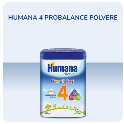 Si raccomanda l'utilizzo del latte materno anche dopo l'anno di vita. Humana 4 va inserito all'interno di una dieta varia ed equilibrata e di uno stile di vita sano.