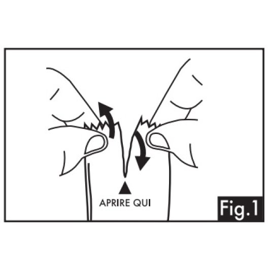 - Aprire la busta sigillata dal lato indicato per estrarre l’applicatore monouso (Fig. 1);
