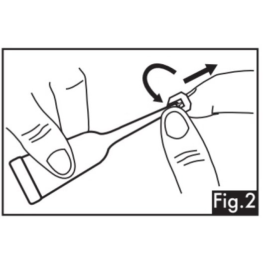 - Ruotare e rimuovere l’aletta di chiusura dell’applicatore per consentirne l’apertura (Fig. 2);