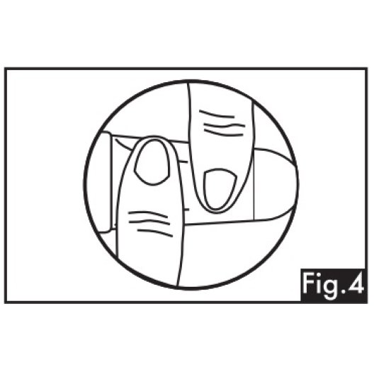- Spremere con decisione il corpo dell’applicatore lungo tutta la sua lunghezza, per immettere il gel in vagina (Fig. 4). È previsto che una piccola quantità di gel resti nell’applicatore, che è appositamente sovrariempito;