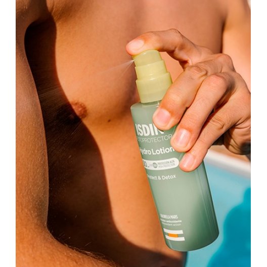 ISDIN Fotoprotector HydroLotion SPF 50 è una lozione solare corpo bifasica (oleo-acquosa) che offre un'altissima protezione UVB/UVA (SPF 50). La sua formula innovativa unisce l'azione protettiva a un'intensa azione detossinante e rivitalizzante grazie alla presenza di Chlorella maris. Questa doppia fase, idratante e protettiva, dona alla pelle un aspetto più morbido, elastico e luminoso.
