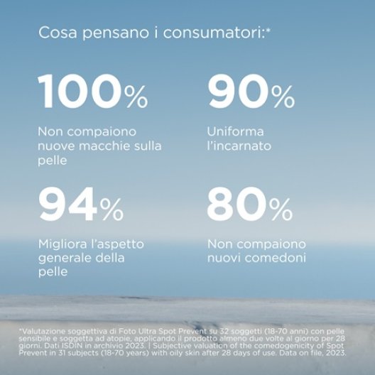 ISDIN FotoUltra 100 Spot Prevent SPF 50+ è il trattamento fotoprotettivo quotidiano studiato per pelli con tendenza a sviluppare macchie. Offre una protezione UVB/UVA estremamente alta, potenziata contro la Luce Blu e l'Inquinamento, combinando filtri solari avanzati con potenti attivi antiossidanti. È il prodotto ideale per chi cerca prevenzione e uniformità, con la garanzia di un brand leader prescritto dai dermatologi.