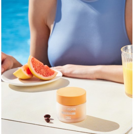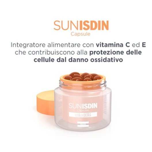 SunISDIN è l'integratore alimentare formulato da dermatologi e nutrizionisti per supportare la pelle dall'interno, grazie all'innovativa combinazione di nutrienti e attivi naturali brevettata VitAox Ultra. Assunto quotidianamente, SunISDIN aiuta a proteggere le cellule dallo stress ossidativo (Vitamina C, E, Selenio) e contribuisce al mantenimento della pelle in condizioni normali (Beta-carotene/Vitamina A). È il complemento ideale alla fotoprotezione topica, soprattutto nei mesi primaverili ed estivi.