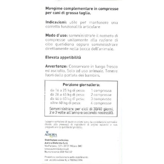 Somministrare il prodotto insieme al pasto o direttamente nella bocca del cane, rispettando le seguenti dosi giornaliere: