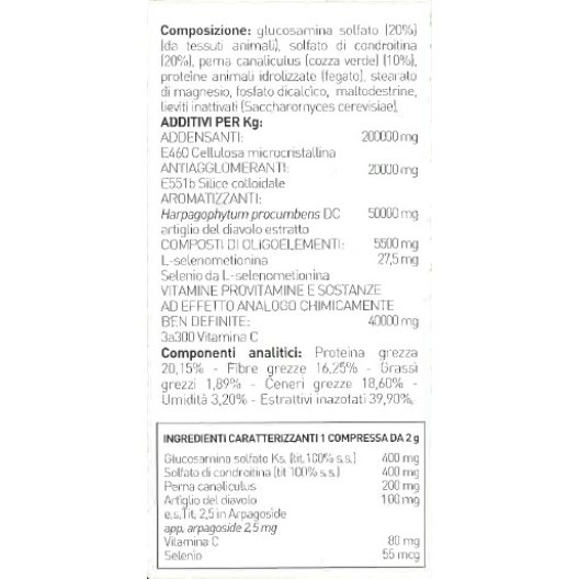 - Glucosamina solfato: essenziale per la rigenerazione delle cartilagini e il mantenimento della loro elasticità.