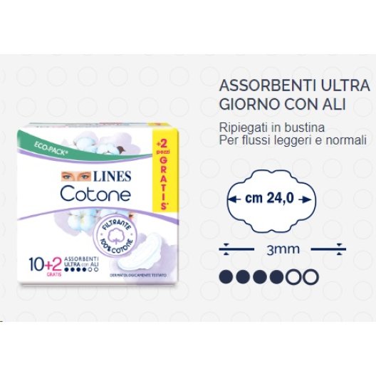 Lines Cotone BIO assorbenti giorno con ali - 12 assorbenti