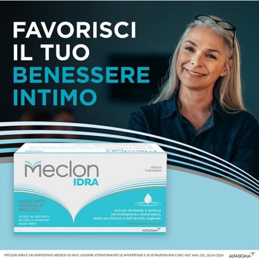 Meclon Idra è un trattamento idratante vaginale in formato monodose, studiato per contrastare la secchezza vaginale e alleviare i fastidi legati all’atrofia vulvovaginale, come bruciore, prurito, irritazione e dolore durante i rapporti.