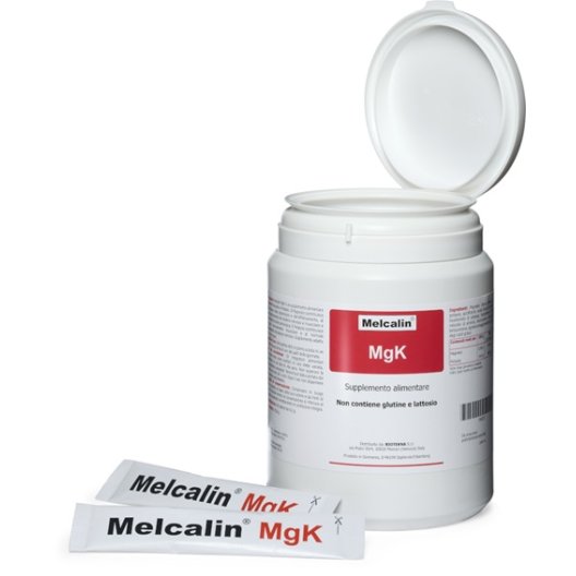 Melcalin MgK e' un integratore alimentare in polvere, contenuto in 28 bustine stick predosate, che offre un bilanciato apporto di Magnesio e Potassio in forma di citrati (citrato dibasico di magnesio e citrato di potassio), altamente biodisponibile. Il Magnesio e' fondamentale per il metabolismo energetico, mentre il Potassio contribuisce in modo specifico al buon funzionamento muscolare e del sistema nervoso. La preparazione e' veloce e il gusto naturale di arancia lo rende piacevole da bere, aiutandoti a mantenere l'idratazione e l'equilibrio salino.