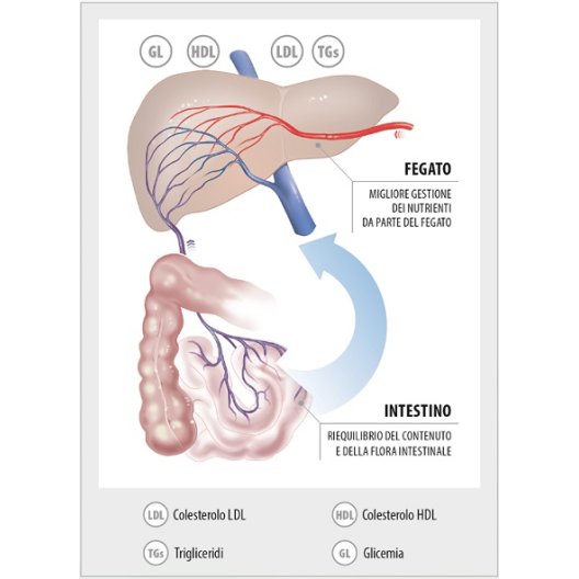 Riequilibrio della Flora Intestinale: Contribuisce al miglioramento delle funzioni metaboliche grazie al riequilibrio della flora intestinale.