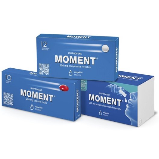Moment è un farmaco a base di ibuprofene, appartenente alla classe degli analgesici e antinfiammatori non steroidei (FANS). È progettato per alleviare rapidamente il mal di testa e altri dolori di varia origine e natura. L'ibuprofene, il principio attivo di Moment, ha proprietà analgesiche, antinfiammatorie e antipiretiche, rendendolo efficace contro dolori muscolari, osteo-articolari, nevralgie, mal di denti e dolori mestruali.