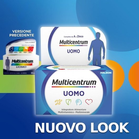 Multicentrum Uomo è un integratore alimentare multivitaminico multiminerale, specifico per l'uomo che non abbia superato i 50 anni, con livelli bilanciati di vitamine e minerali tra i quali vitamine B e magnesio.