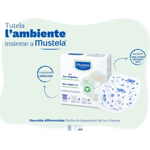 Mustela 10 Eco-Salviette 100% Cotone Bio - Lavabili e Riutilizzabili