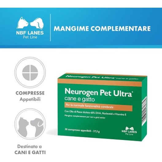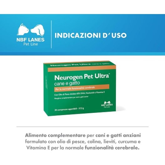 Con l'avanzare dell'età, il supporto alla funzione cerebrale diventa essenziale per mantenere la vitalità e la qualità di vita dei nostri cani e gatti. Neurogen Pet Ultra 30 Compresse Appetibili di NBF Lanes è un mangime complementare specificamente formulato per fornire un supporto avanzato alla normale funzionalità cerebrale negli animali anziani.