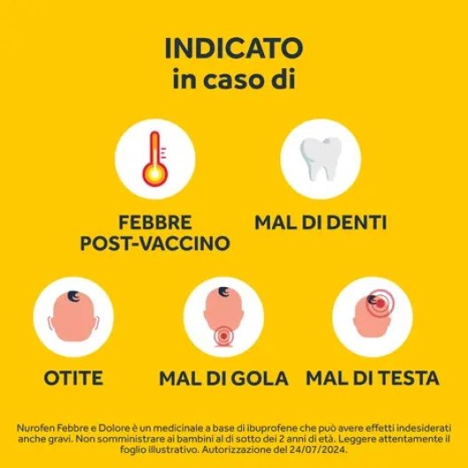 Nurofen Sciroppo è indicato per il trattamento sintomatico della febbre e del dolore lieve o moderato nei bambini, compresi: