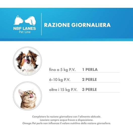 È importante completare la razione giornaliera con il cibo abituale dell'animale. Assicurati di lasciare sempre acqua fresca a disposizione. Ricorda che Omega Pet Perle non influenzerà il valore nutritivo della razione giornaliera.