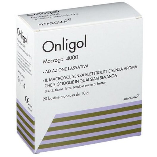 Proprietà: Onligol agisce come lassativo osmotico, migliorando l'idratazione delle feci e facilitando il loro passaggio attraverso l'intestino. Il macrogol aumenta il volume delle feci e rende più morbida la consistenza.