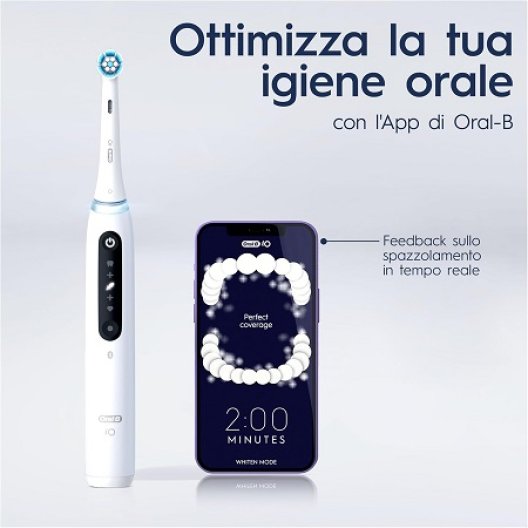 - Tecnologia iO: innovativa combinazione di setole oscillanti e testina rotonda per una pulizia profonda.