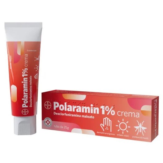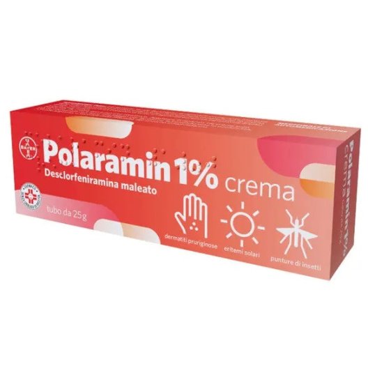 Polaramin Crema 1% è un trattamento dermatologico topico a base di desclorfeniramina maleato, un antistaminico ad azione locale. È indicata per alleviare pruriti cutanei, arrossamenti, eritemi solari e reazioni cutanee da punture d’insetto.