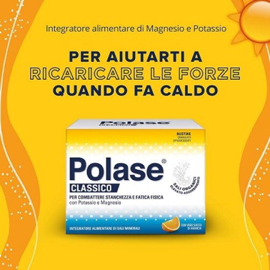 Risveglia la tua vitalità con Polase Classico Arancia, l'integratore alimentare ricco di Potassio e Magnesio per contrastare stanchezza e debolezza fisica, soprattutto durante le giornate calde e afoso.