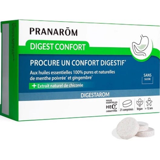 Pranarom Digest Confort è un integratore progettato per offrire un comfort digestivo immediato, grazie alla sua formulazione con gusto fresco e mentolato. Combinando oli essenziali chemiotipizzati e cicoria, questo integratore assicura un ottimale comfort digestivo dopo pasti abbondanti o in caso di mal d'auto.