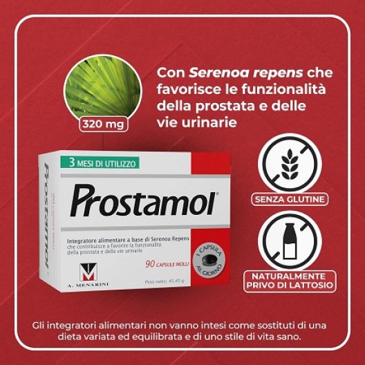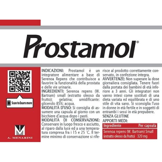 Prostamol è l'integratore alimentare ideale per supportare la funzionalità della prostata e mantenere il benessere delle vie urinarie. Formulato con un'elevata concentrazione di 320 mg di Serenoa Repens (nota anche come Saw Palmetto), Prostamol è la scelta naturale per gli uomini che desiderano prendersi cura della propria salute urologica. La Serenoa Repens è una pianta ampiamente riconosciuta per le sue proprietà benefiche sul sistema genito-urinario maschile, contribuendo a mantenere la prostata in salute e a favorire un flusso urinario regolare e confortevole. Scegliere Prostamol significa optare per un supporto mirato e naturale per il tuo benessere quotidiano.