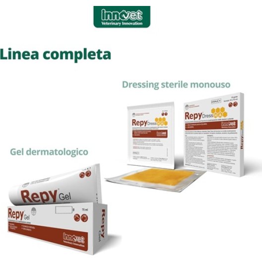 Rimozione: Rimuovere lentamente e delicatamente. Se il dressing è adeso, inumidire con soluzione salina sterile prima di rimuovere. Applicare Repy Gel a ogni cambio di medicazione.