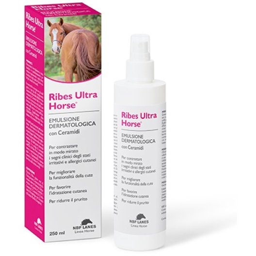 Ribes Ultra Horse Emulsione Dermatologica è un prodotto studiato per lenire i segni clinici localizzati degli stati irritativi e allergici cutanei nei cavalli. La formulazione avanzata aiuta a migliorare l'idratazione e la protezione della cute, normalizzando la funzionalità della barriera cutanea e attenuando la sensazione di prurito.