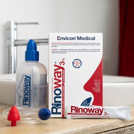La confezione contiene un dispositivo doccia nasale per lavaggi e 15 bustine di sali ipertonici per costituire la soluzione ipertonica. Rinoway viene utilizzato per il trattamento di rinocongiuntivite allergica e le infezioni delle alte vie aeree. L’utilizzo di una soluzione ipertonica risulta utile: per l’igiene nasale quotidiana, in caso di rinite allergica perenne o di sinusite acuta, raffreddore comune o russamento.