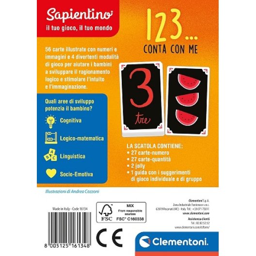 Il gioco educativo Sapientino 1, 2, 3... Conta con Me di Clementoni è perfetto per aiutare i bambini dai 4 anni in su a sviluppare le loro abilità matematiche di base. Grazie alle 56 carte illustrate, i piccoli imparano a contare associando numeri e quantità in modo intuitivo e divertente.