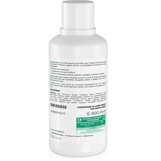 Saugella Attiva è un detergente intimo a pH acido (3.5), formulato con Thymus vulgaris (timo), un antibatterico naturale che offre una protezione efficace nei momenti più delicati. Grazie alle sue proprietà, è ideale per mantenere l’equilibrio fisiologico dell’area vulvare e garantire igiene e sicurezza nei periodi a rischio.