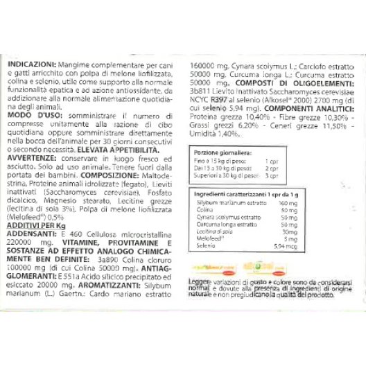 - Complemento alla dieta quotidiana di cani e gatti in situazioni di stress epatico, alimentazione squilibrata o trattamento farmacologico.