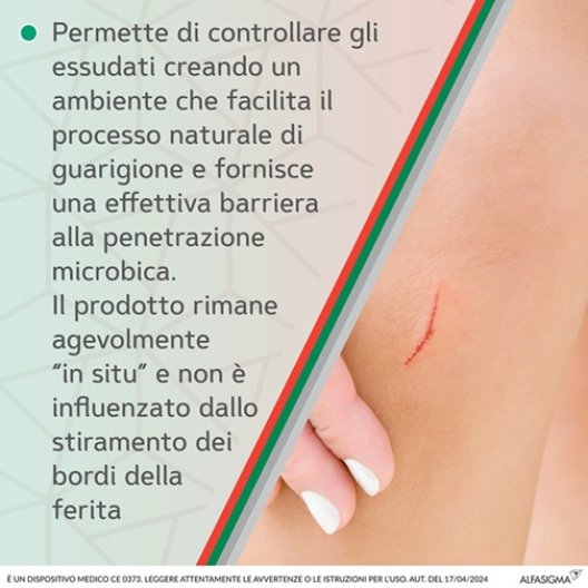 La formulazione in polvere è studiata per adattarsi perfettamente alla zona lesionata senza ostacolare i movimenti della pelle: