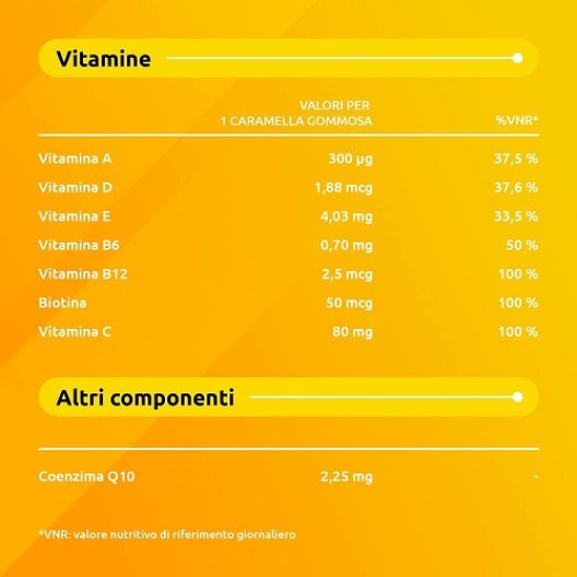 Assumere 1 o 2 caramelle gommose al giorno, seguendo sempre una dieta variata e uno stile di vita sano.