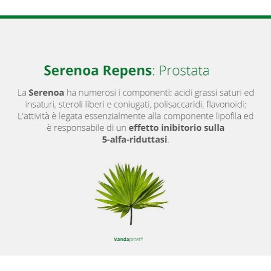 Vandaprost è un integratore a base di serenoa repens utile per il benessere della prostata e delle vie urinarie. La serenoa repens è infatti un rimedio spesso utilizzato come complemento nella terapia per il trattamento dell'ipertrofia prostatica.