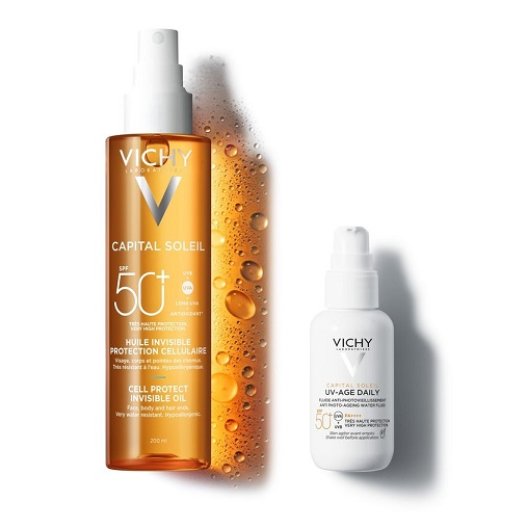L'Olio Abbronzante Spray Invisibile Cell Protect SPF50+ di Vichy protegge la pelle dal danneggiamento solare a livello cellulare, offrendo una sensazione di olio secco ultraleggero. Ideale per viso, corpo e punte dei capelli.