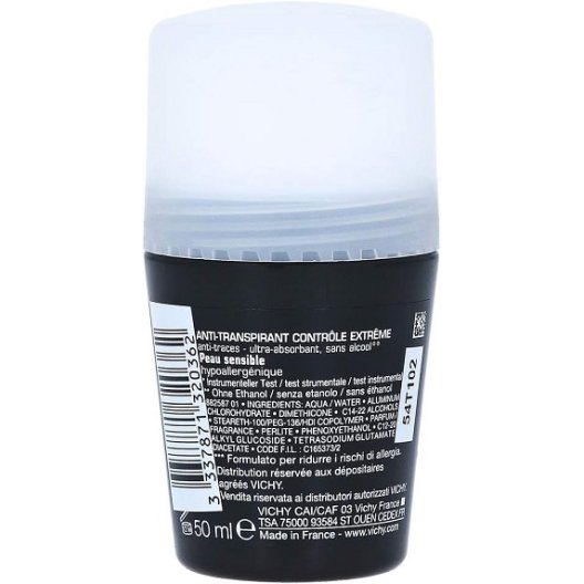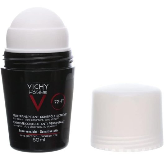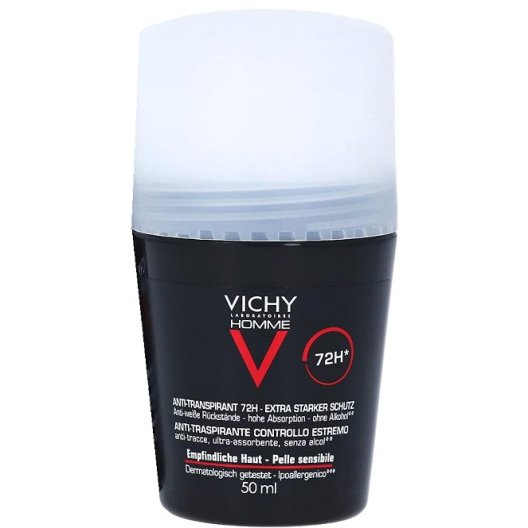 Adatto a tutti i tipi di pelle, inclusa quella particolarmente sensibile, Vichy Homme Deodorante Roll-On 72H offre un'efficacia a lungo termine nell'azione antitraspirante. Non lascia residui o tracce bianche sui vestiti.
