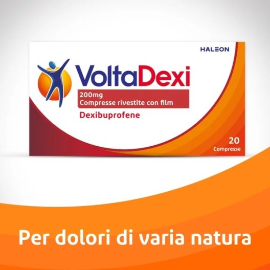 VoltaDexi è un farmaco a base di Dexibuprofene, un principio attivo appartenente alla classe dei FANS (Farmaci Antinfiammatori Non Steroidei). Rispetto al comune ibuprofene, il dexibuprofene rappresenta la sua forma "attiva" e purificata, agendo in modo mirato sulla riduzione delle prostaglandine, le sostanze responsabili della sensazione di dolore e dello stato infiammatorio nel nostro corpo.